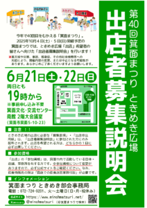 第40回箕面まつりときめき広場の出店に関する主旨や注意点、参加方法をご案内する「出店者募集説明会」を、下記の日程で開催します!